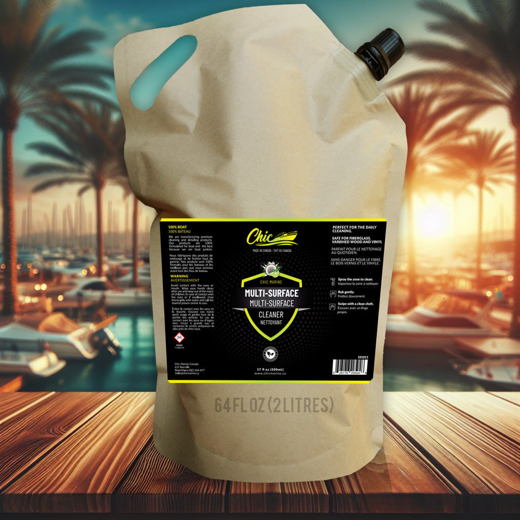 Use the multi-surface cleaner for the boat interior cleaning. This cleaner doesn't affect the wax. Typical cleaners can dammage the gel coat. Our product is formulated for gel coated surface. Also perfect on varnished wood and chrome. Enjoy the smell of coconut and lime!