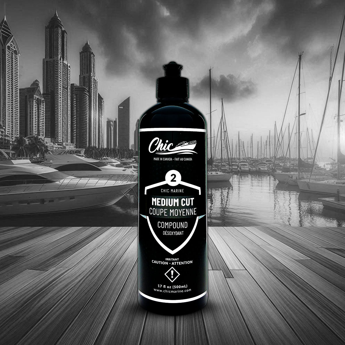 Medium cut rubbing compound made with high quality white aluminium oxide grit. Removes heavy oxidation from gelcoat in a minute. Easy to use and 100% formulated for boat gelcoat. For heavy oxidation, let's start with the ultra cut compound.
